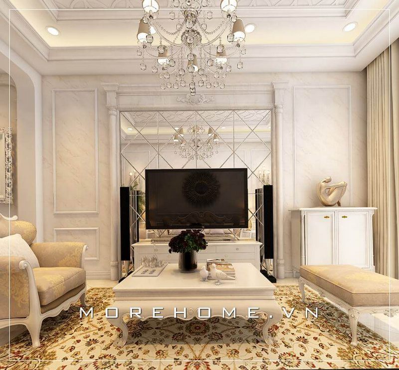 Không gian phòng khách biệt thự tân cổ điển được trang trí sang trọng và đẳng cấp.
